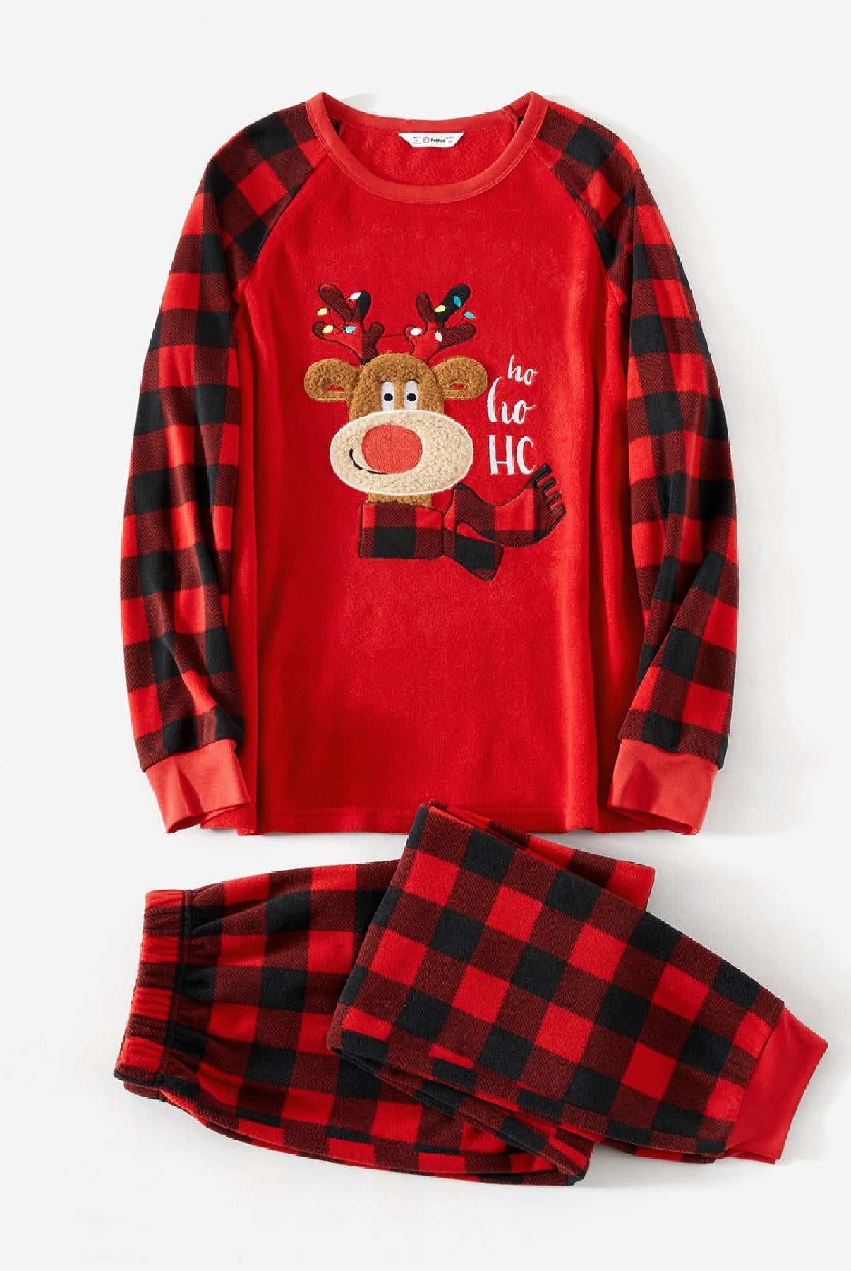 Unisex Komplet Piżam Rodzinnych Czerwony Boże Narodzenie - Wzór Kraty i Renifer