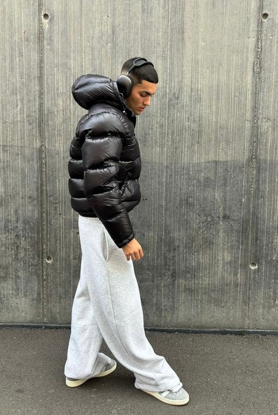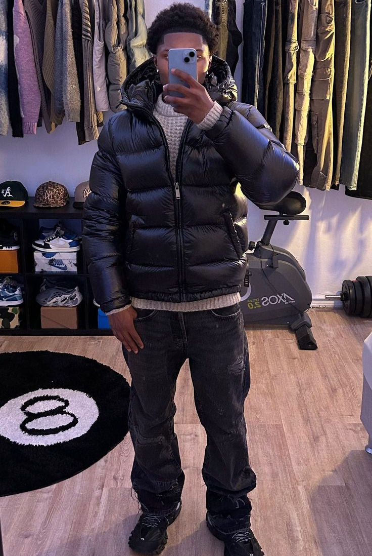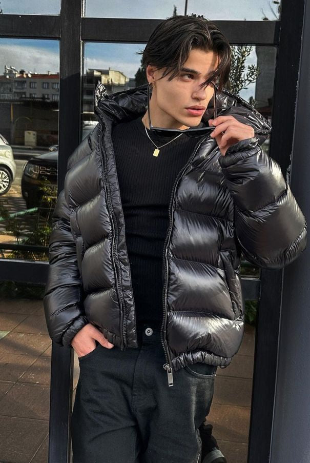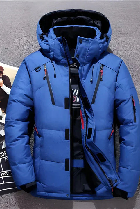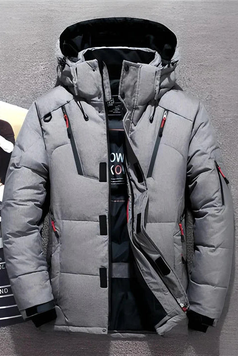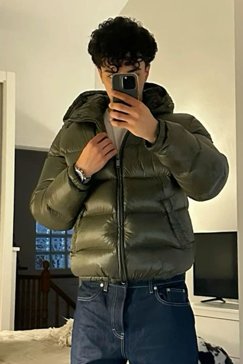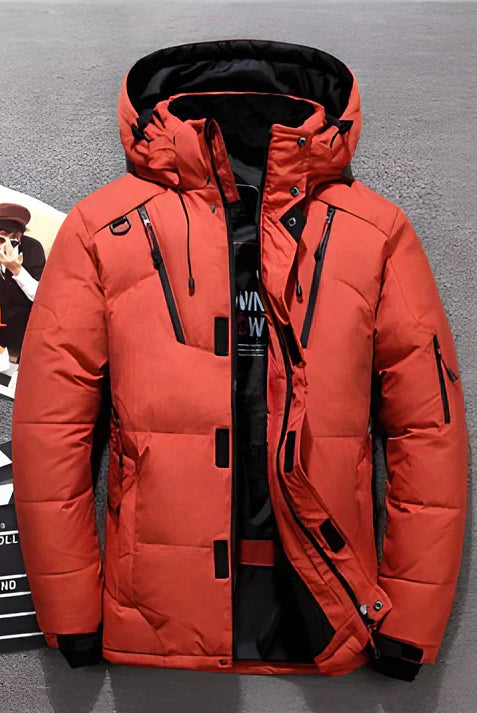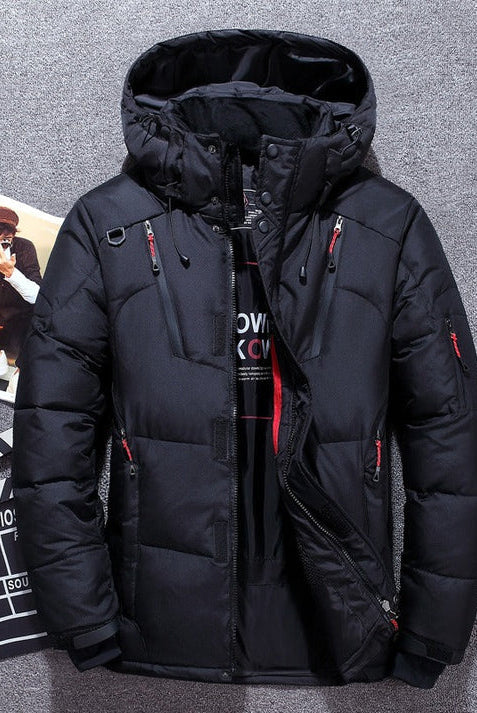 Męska Kurtka Puchowa Zimowa - Kaptur i Kieszenie na Zamek