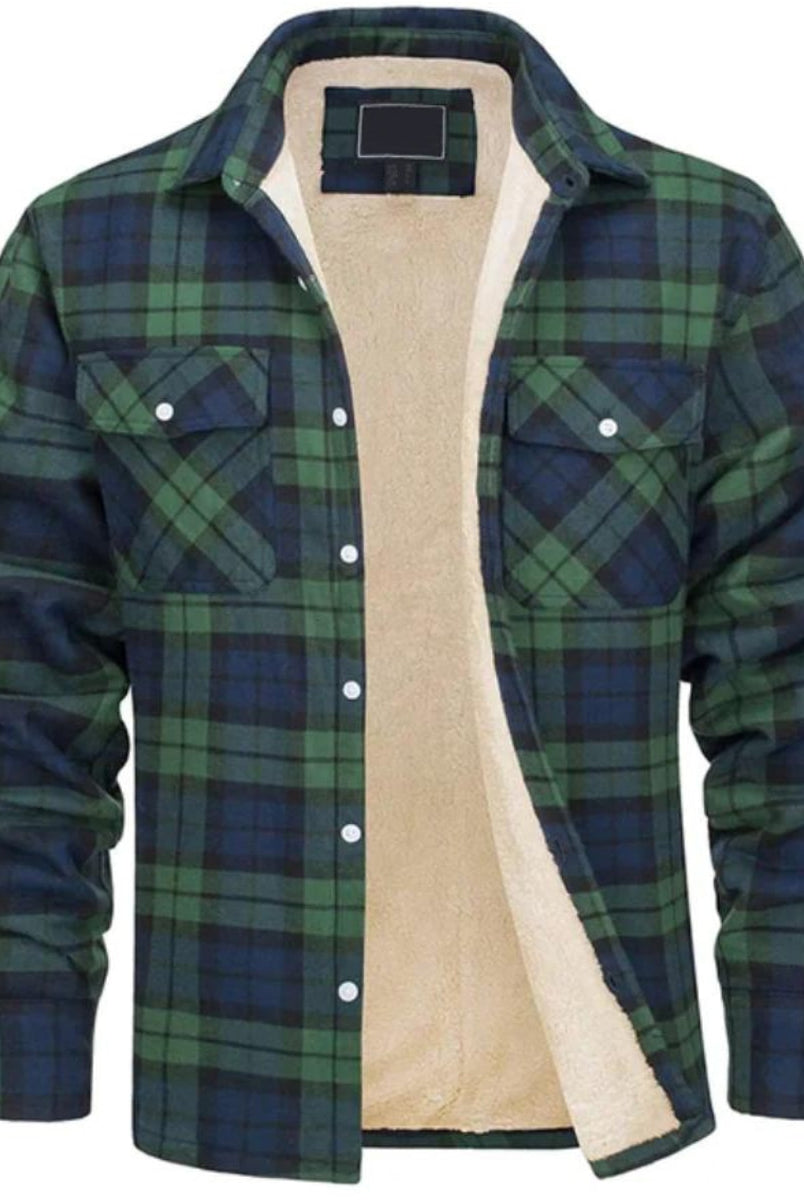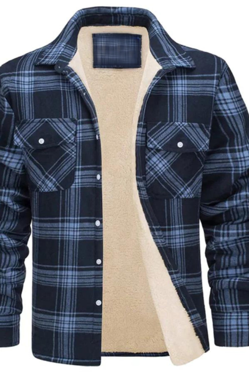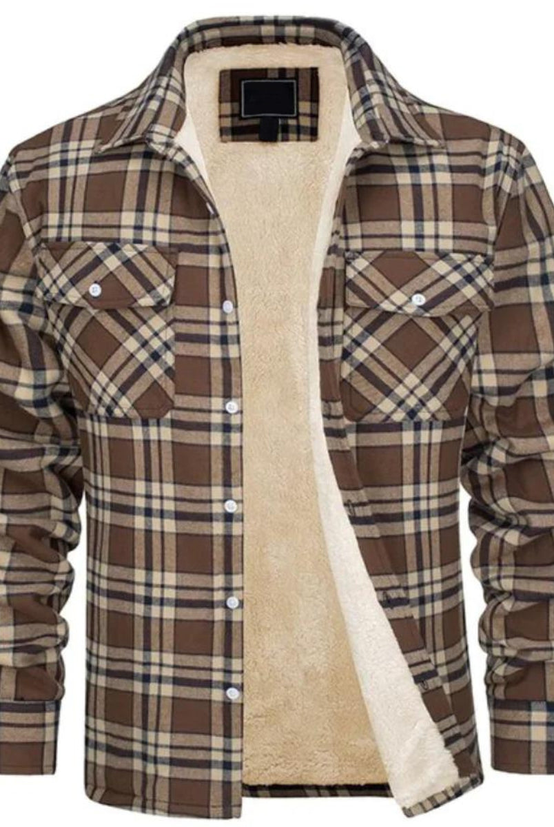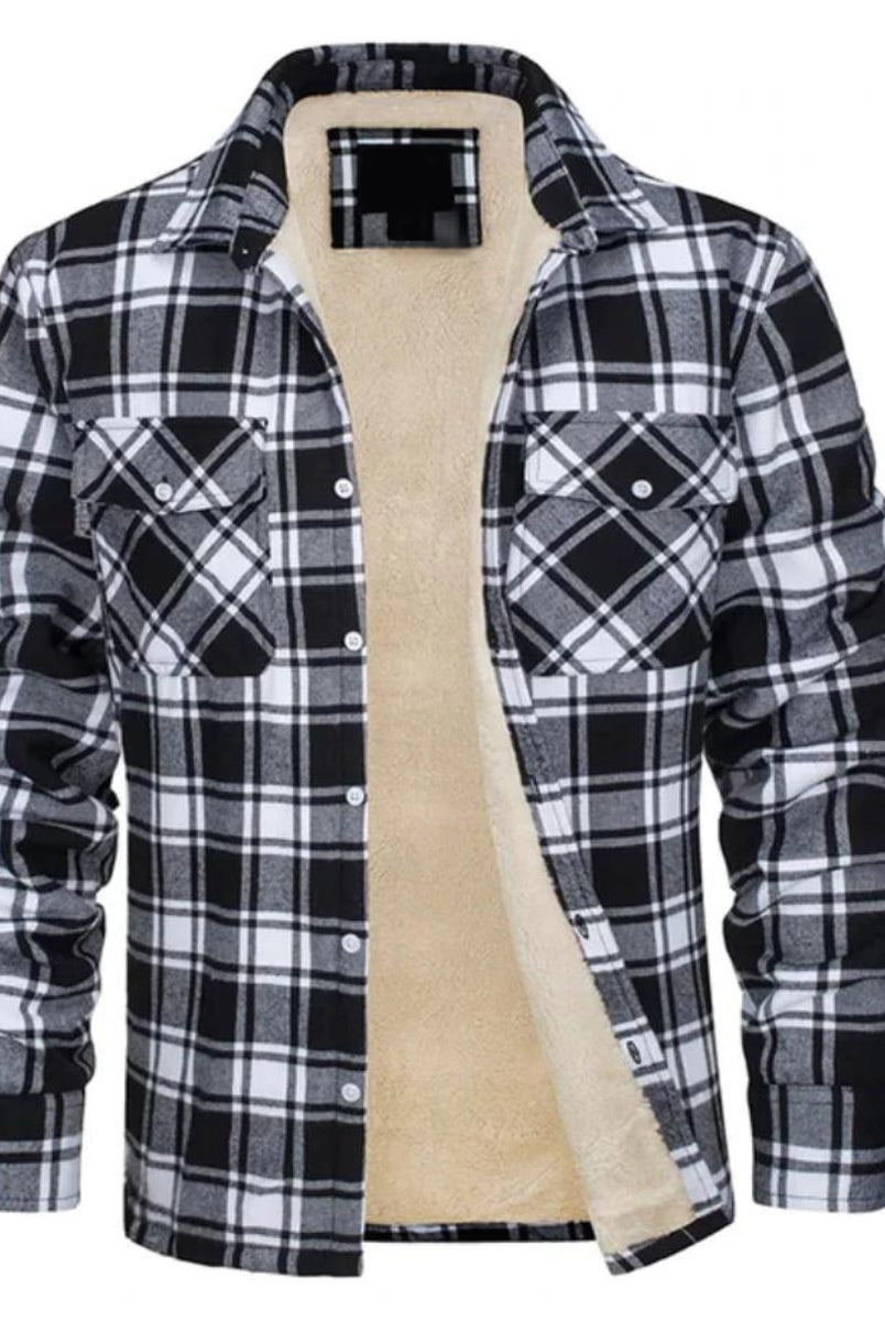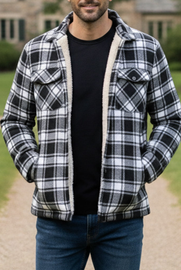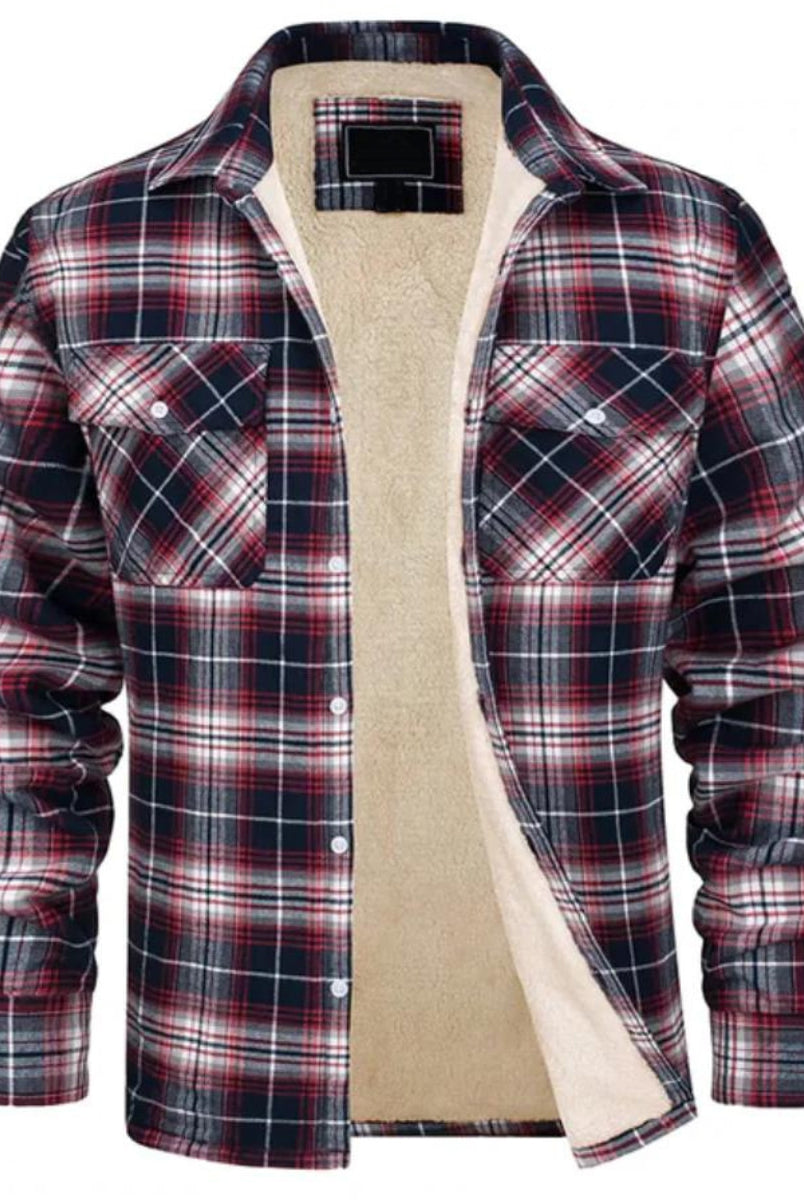 Męska Kurtka Koszulowa - Zimowa W Kratę Ocieplana