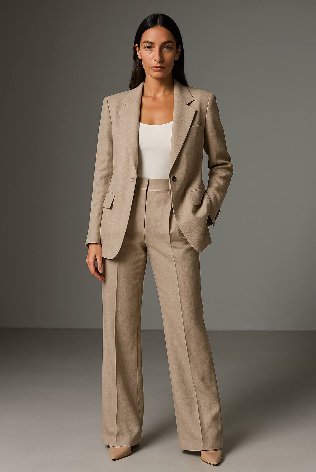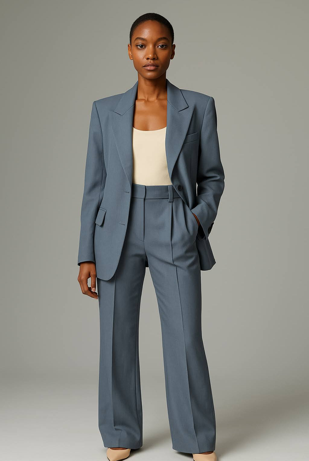 Damski Komplet Garniturowy - Marynarka I Szerokie Spodnie Z Wysokim Stanem