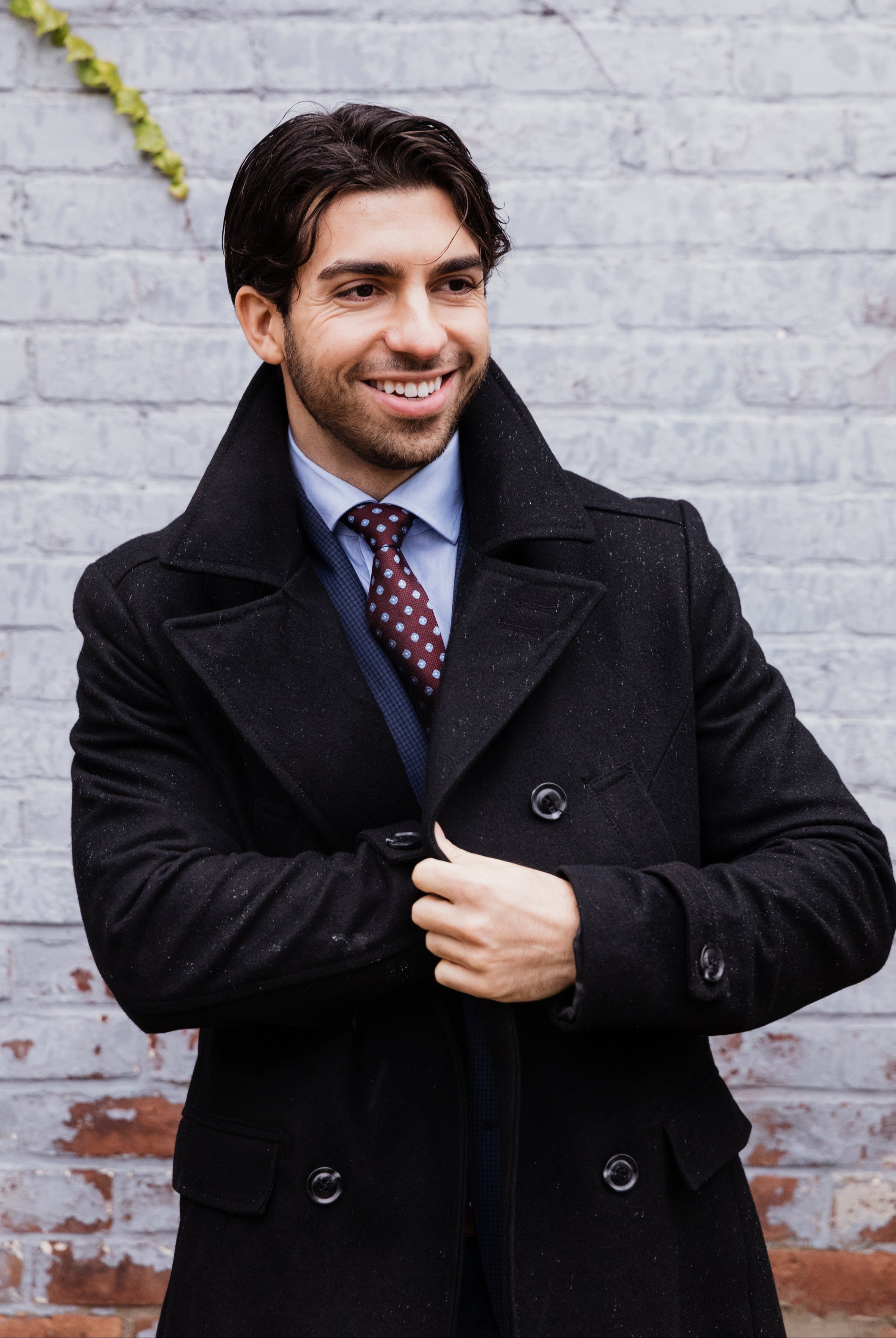 Męski Płaszcz - Z Wysoką Stójką i Zapięciem na Guziki