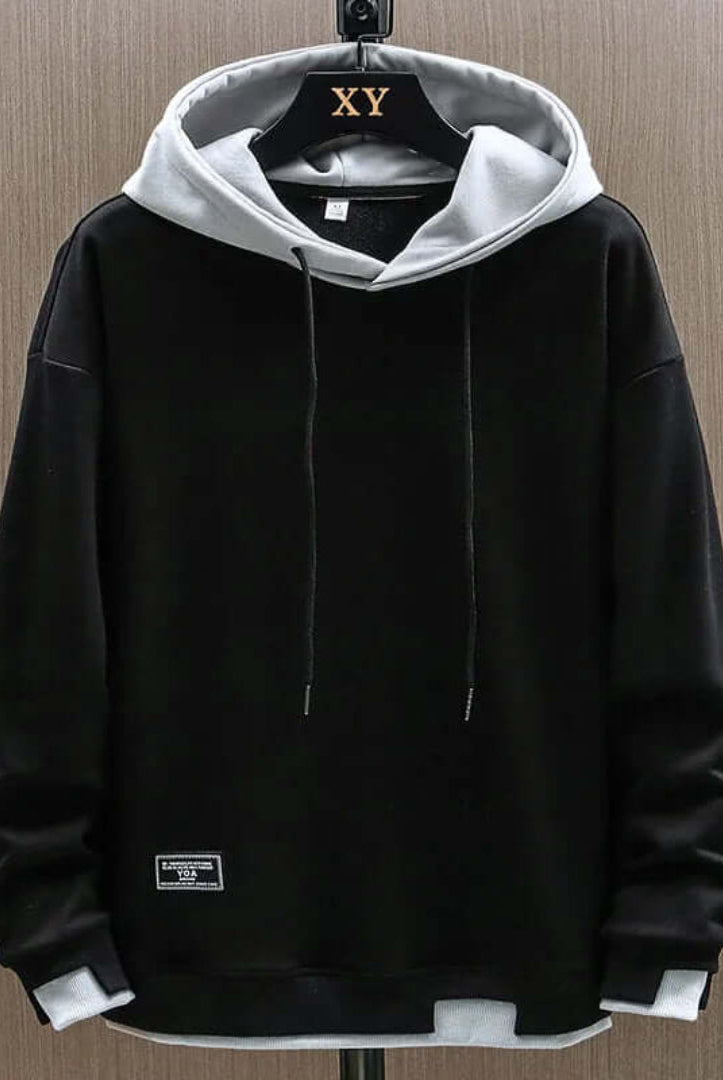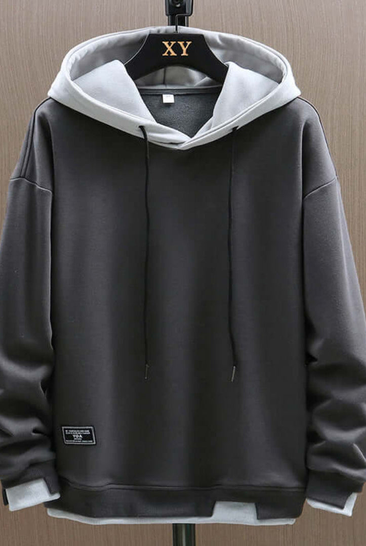 Męska Bluza z Kapturem Oversize - Kontrastowy Kaptur i Kieszeń Kangurka