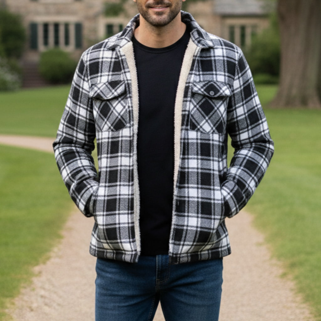 Męska Kurtka Koszulowa - Zimowa W Kratę Ocieplana