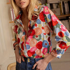 - Łatwa Stylizacja: Wyrazisty wzór sprawia, że ta bluzka jest kluczowym elementem, który można łatwo łączyć z prostymi dołami, takimi jak dżinsy lub spódnica, tworząc szykowny i dopracowany strój.