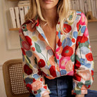 Powitaj nowy sezon z naszą Damską Bluzką w Kwiaty. Ten stylowy i wyrazisty element to idealny sposób na dodanie kolorowego akcentu do Twojej wiosennej garderoby. Kwiatowy wzór na całej powierzchni, z bogatymi odcieniami, emanuje świeżą i radosną estetyką. Dzięki klasycznemu krojowi z zapięciem na guziki i wszechstronnym, długim rękawom, ta bluzka jest wygodnym i niezbędnym wyborem zarówno na codzienne wyjścia, jak i bardziej eleganckie okazje.