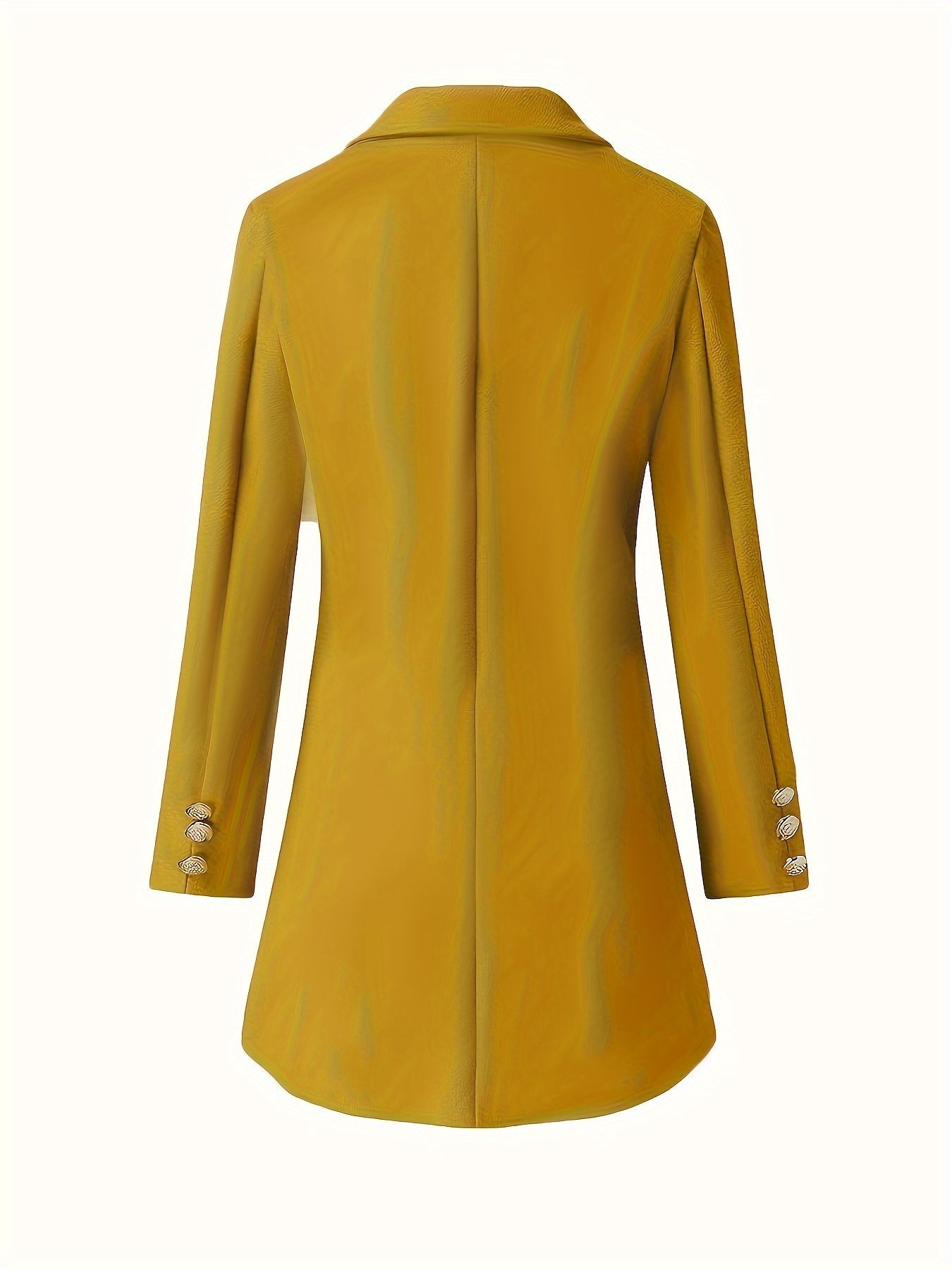 Damski Żółty Płaszcz Dwurzędowy - Długi, Z Klapami