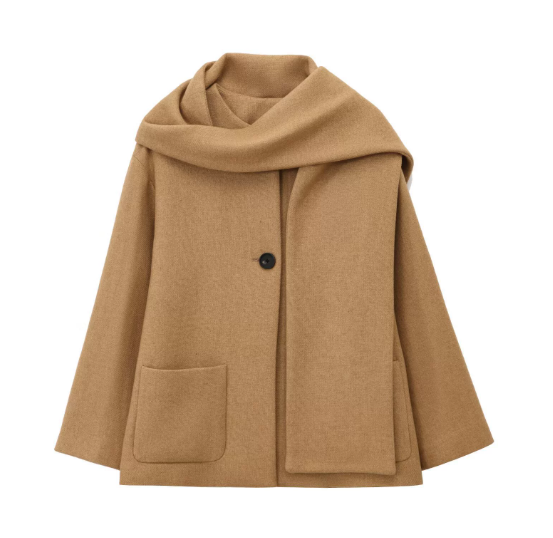 Damski Płaszcz Krótki - Z Guzikami i Szerokim Kołnierzem