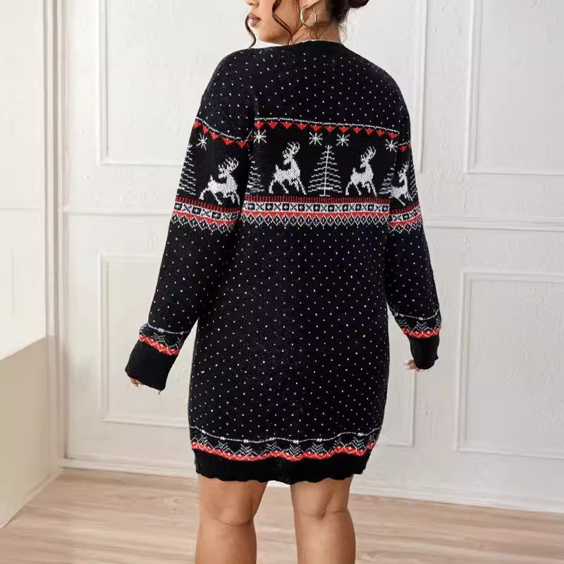 Damska Dziana Sukienka Swetrowa Świąteczna - Wzór Norweski Renifery