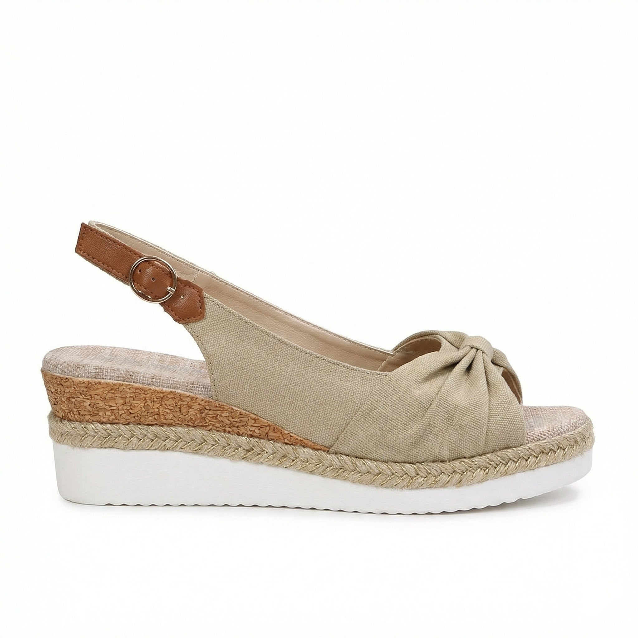 Damskie Sandały na Koturnie - Detal Węzeł i Pleciona Podeszwa na Koturnie