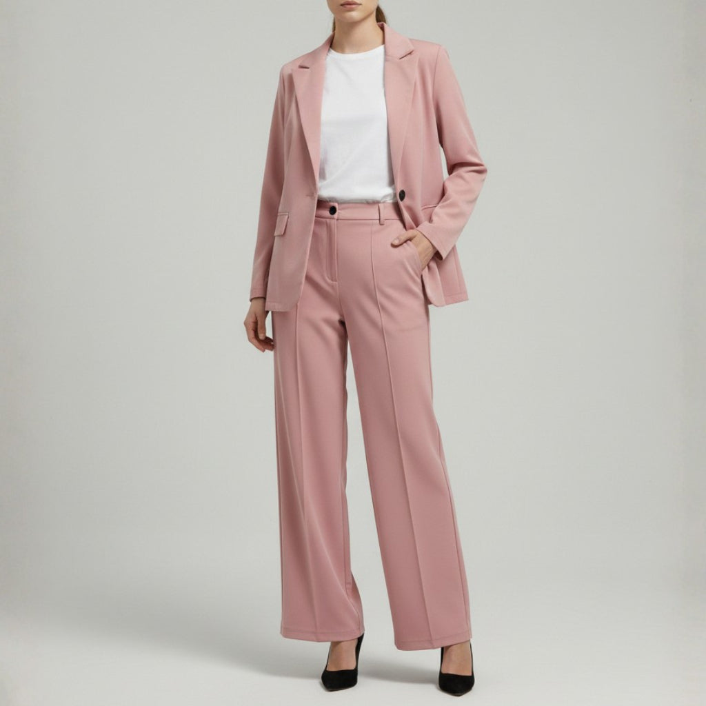 Damski Komplet Garniturowy - Marynarka I Szerokie Spodnie Z Wysokim Stanem