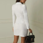 Zdominuj otoczenie dzięki architektonicznej precyzji i wyrafinowanej elegancji tej Damskiej Sukienki Żakietowej Mini