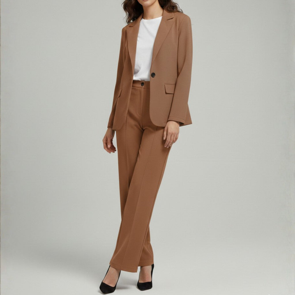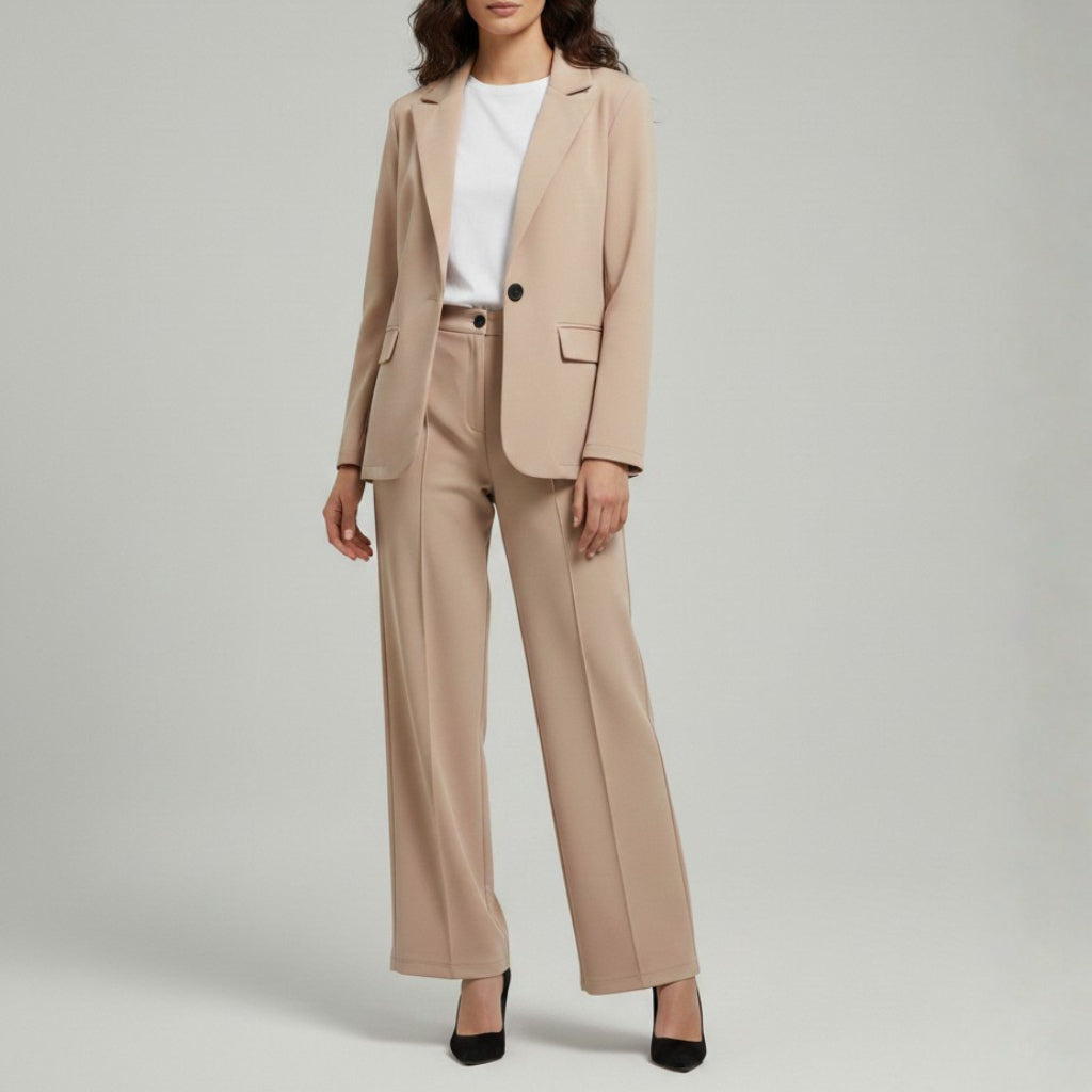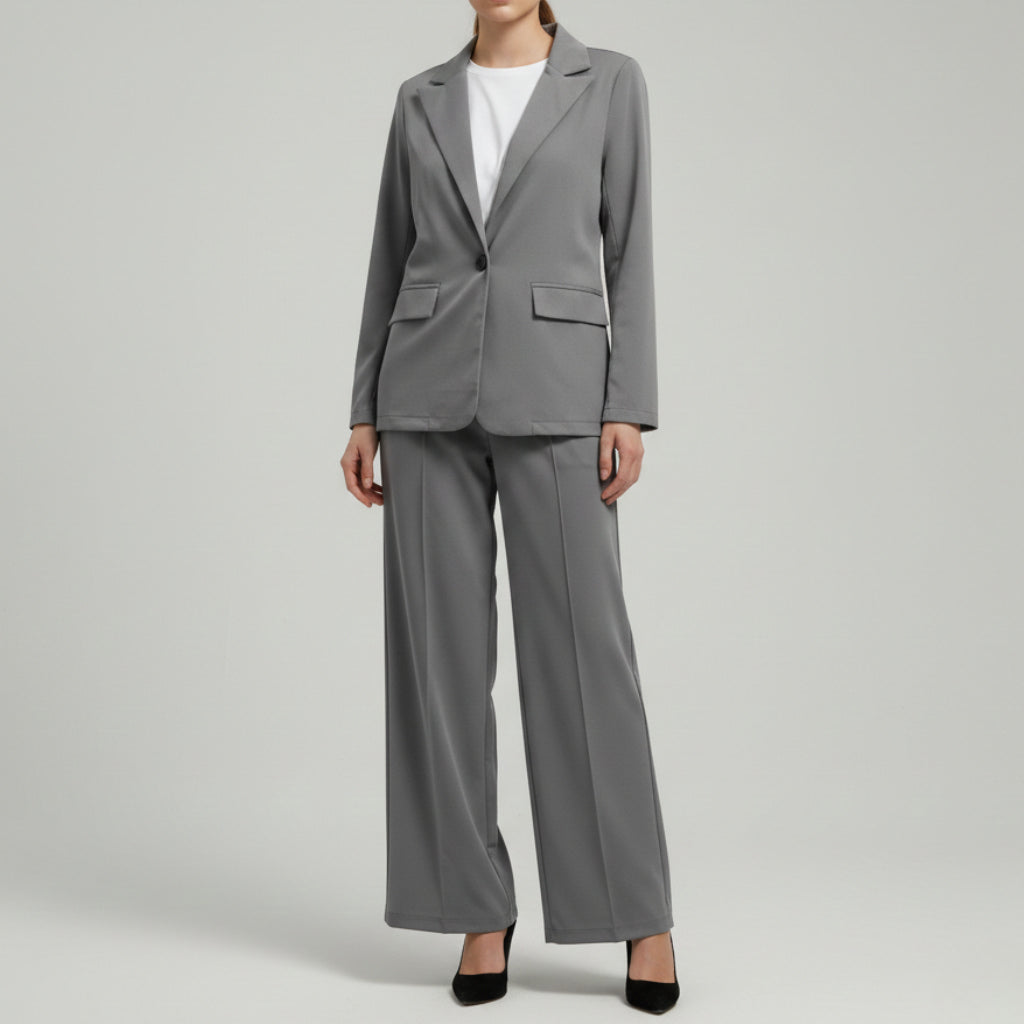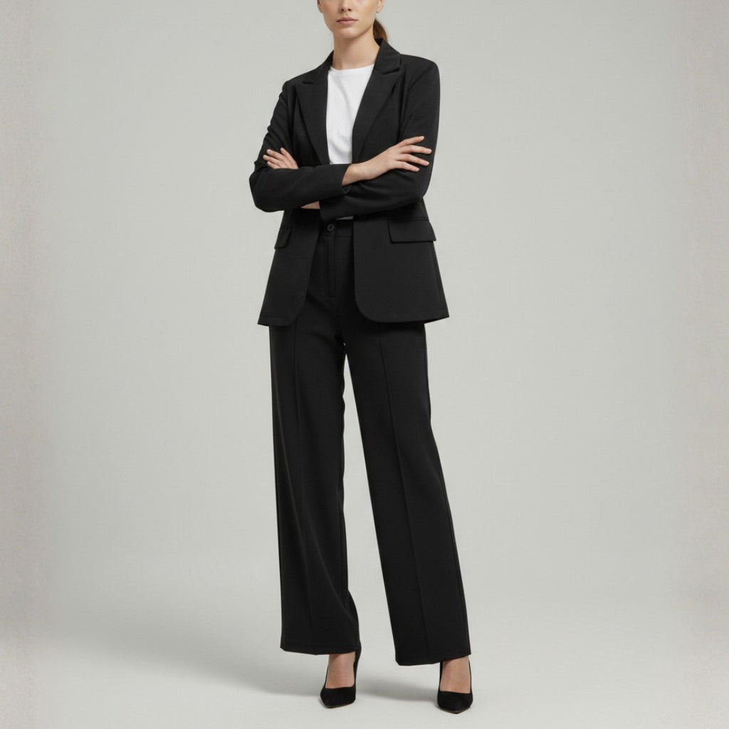 Damski Komplet Garniturowy - Marynarka I Szerokie Spodnie Z Wysokim Stanem