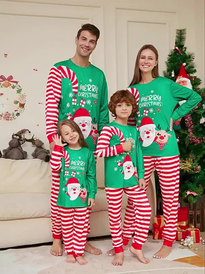 Unisex Piżama Świąteczna Rodzinna - Paski i Mikołaj