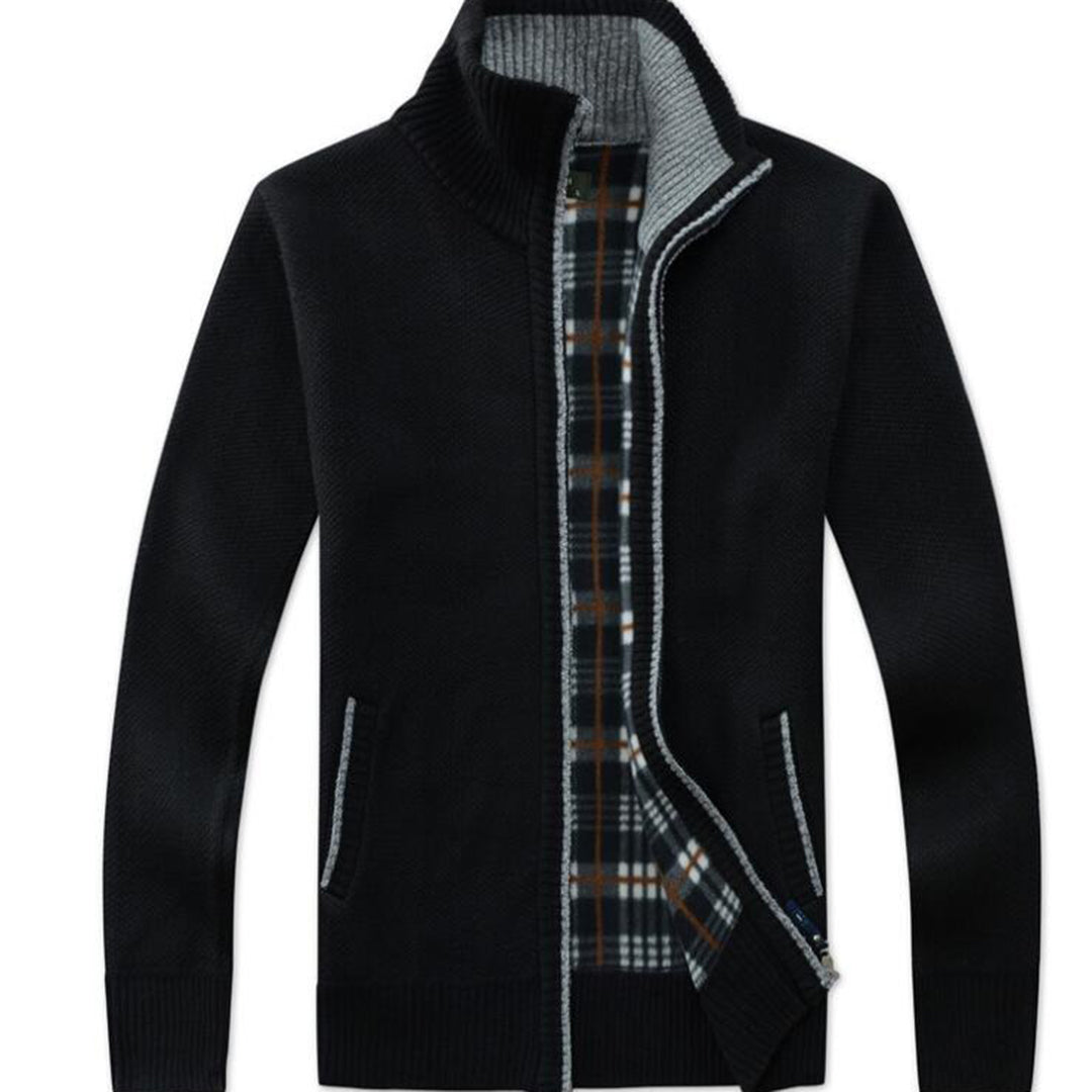 Wzbogać swoją zimową garderobę o nasz męski kardigan dzianinowy, idealne połączenie stylu i wyjątkowego ciepła. Ten stylowy kardigan na zamek jest ręcznie wykonany dla współczesnego mężczyzny, oferując maksymalny komfort i ochronę termiczną przed zimnem. Dzięki klasycznemu, dzianinowemu wykończeniu, przytulnej podszewce wewnętrznej i wysokiemu kołnierzowi zapinanemu na zamek, zapewnia zarówno elegancki wygląd, jak i niezawodną funkcjonalność. Ten kardigan jest bestsellerem na każdą okazję, zarówno casualową, jak i formalną.
