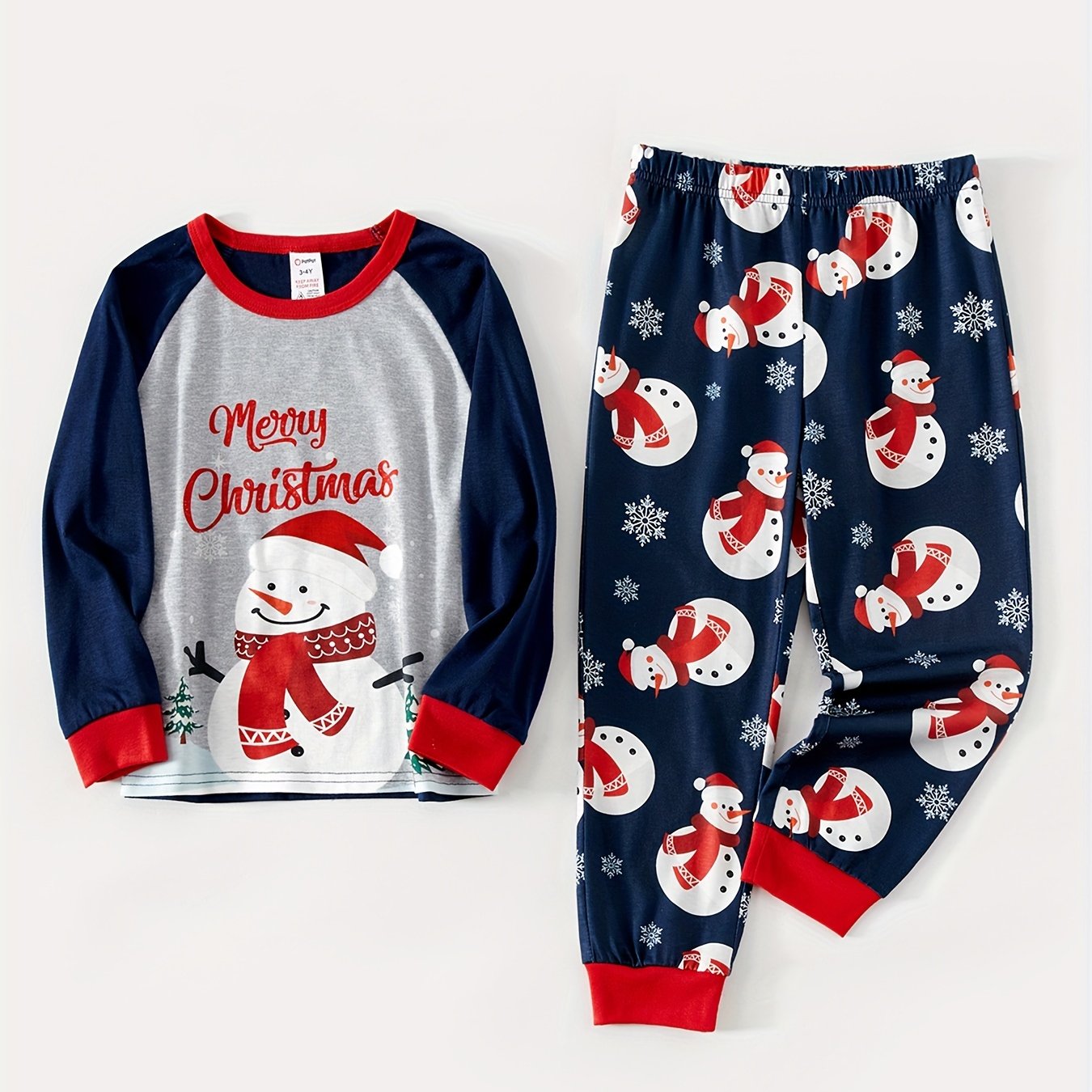 Unisex Piżama Świąteczna Rodzinna - Wzór Bałwanek z Długim Rękawem
