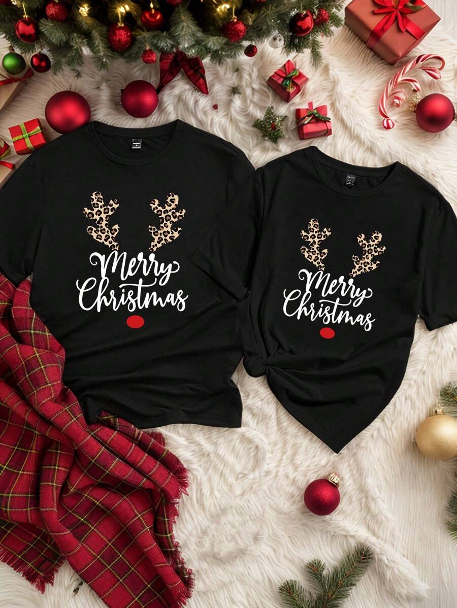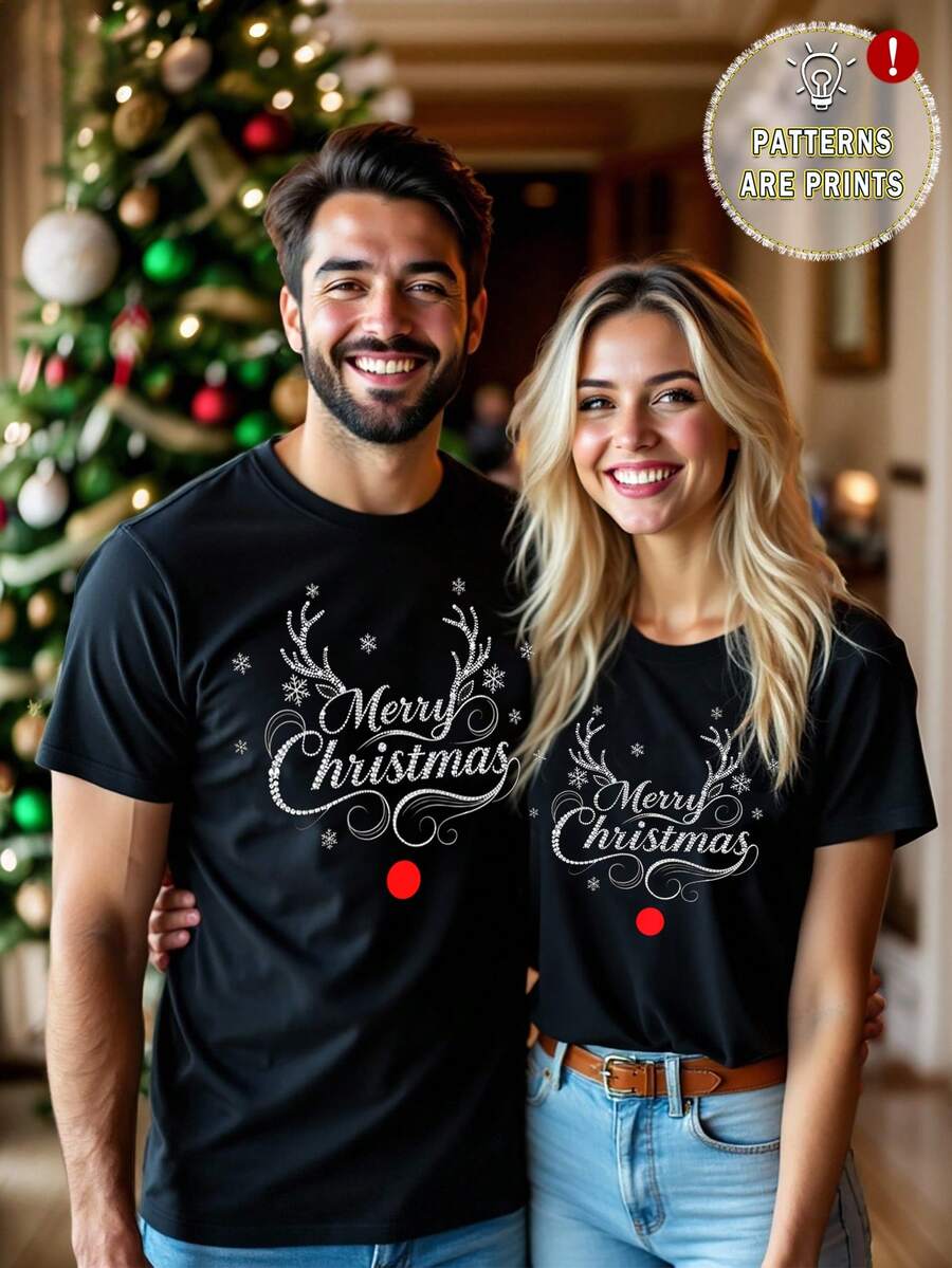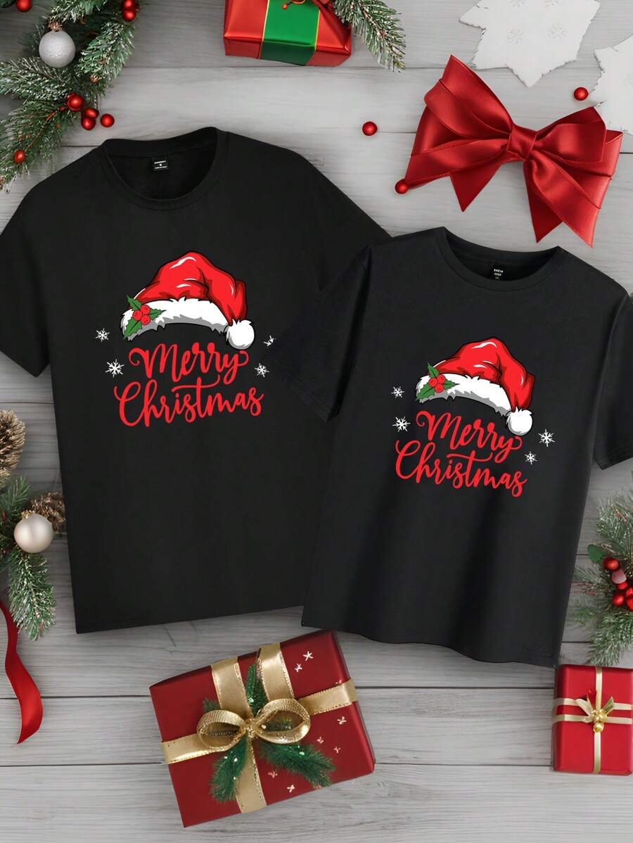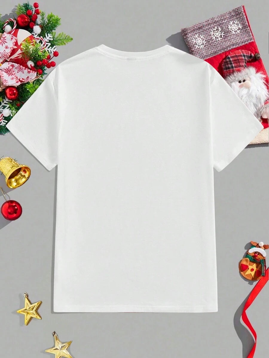 Unisex Czarna Koszulka Świąteczna - Krótki Rękaw z Motywem Świątecznym