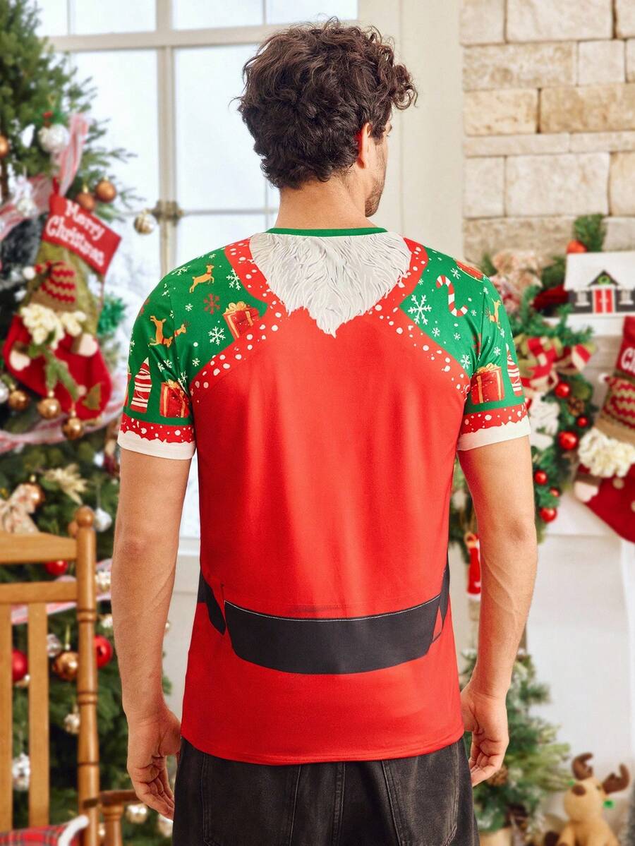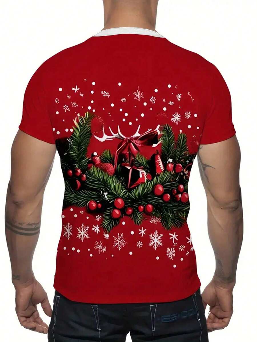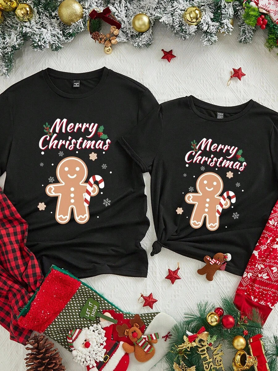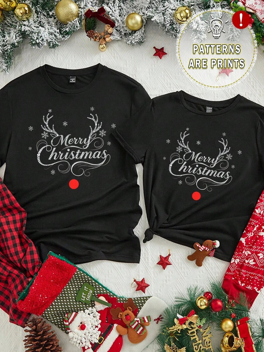 Unisex Czarna Koszulka Świąteczna - Krótki Rękaw z Motywem Świątecznym