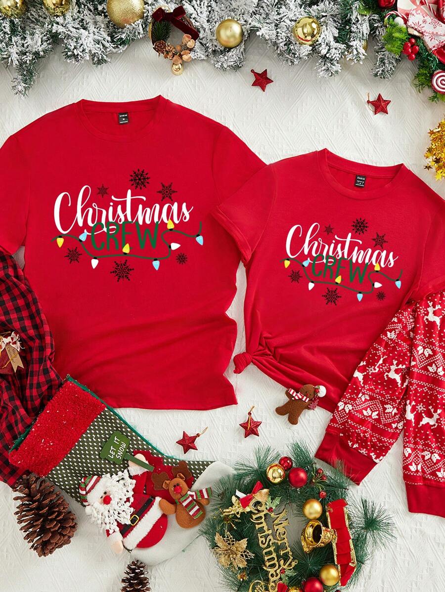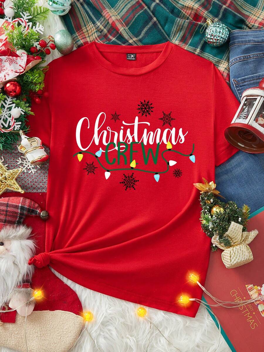 Unisex Czerwona Koszulka Świąteczna - Grafika z Lampkami