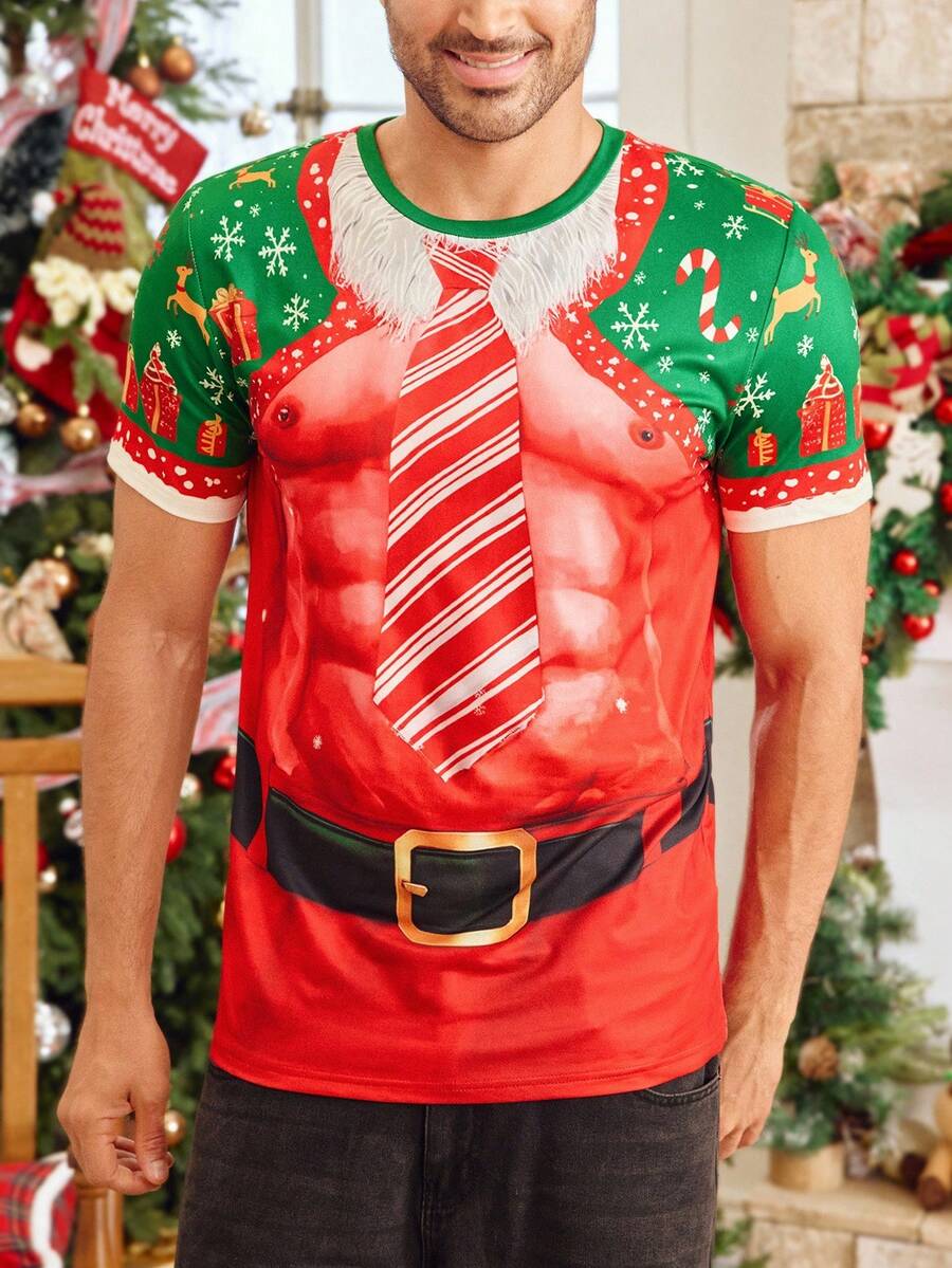 Męska Koszulka Krótki Rękaw Świąteczna - Wzór Klaty i Krawata