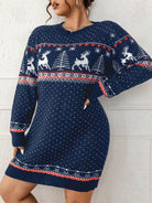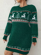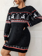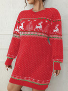 Damska Sukienka Swetrowa Świąteczna Dzianinowa - Mini Z Świątecznym Wzorem