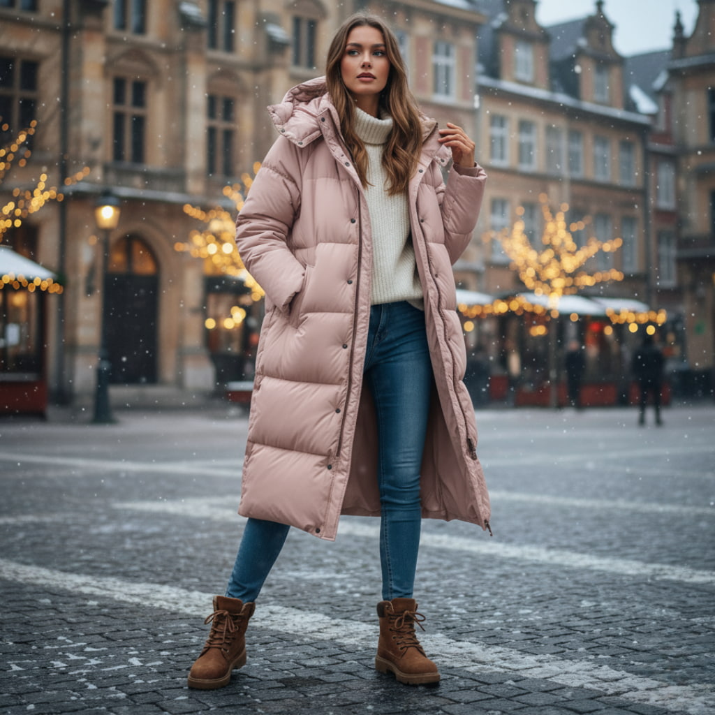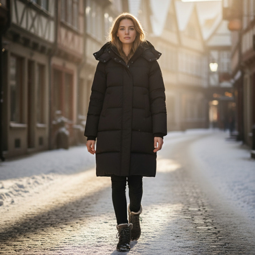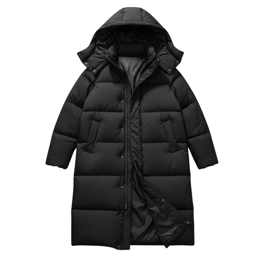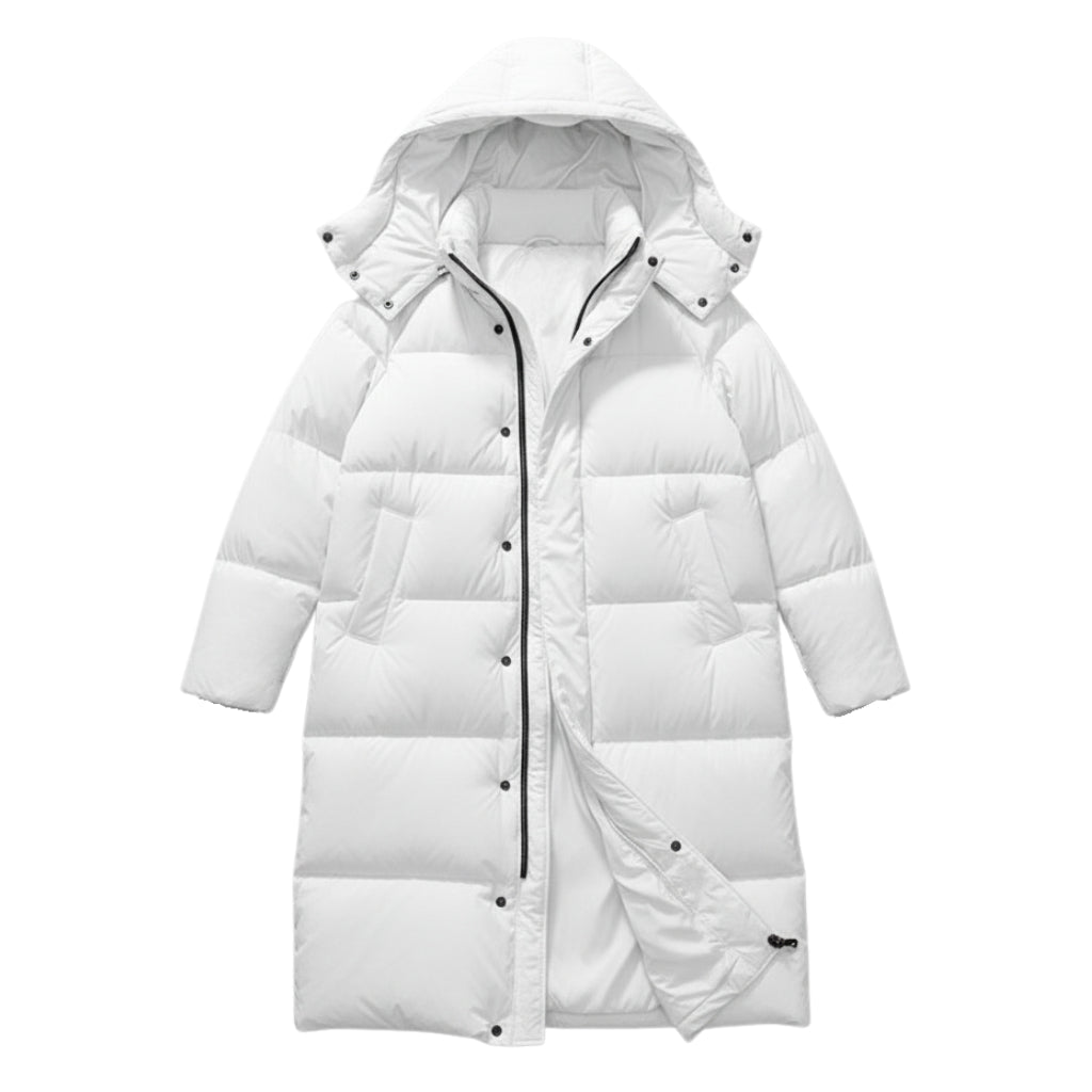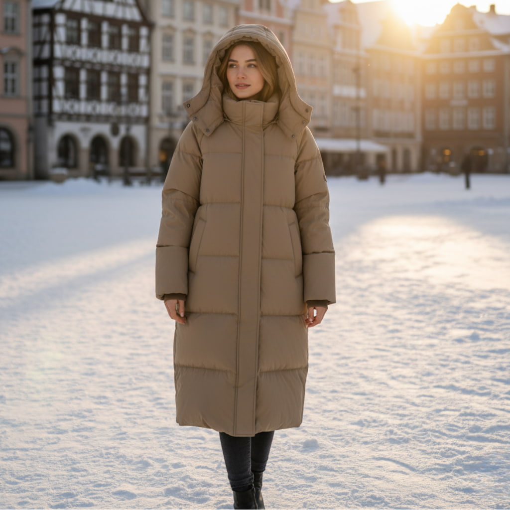 Damski Długi Płaszcz Puchowy Maxi - Z Wysokim Kołnierzem i Kapturem