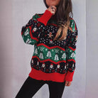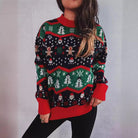 Damski Dziany Sweter Świąteczny - Wzór Renifer i Śnieżynki