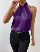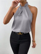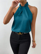 Damski Top Typu Halter - Skręcony Wysoki Kołnierz i Fason bez Rękawów