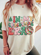 Złap idealny, zrelaksowany i uroczysty nastrój dzięki temu modnemu sezonowemu t-shirtowi. Damska Beżowy Koszulka Świąteczna przemawia bezpośrednio do współczesnego świątecznego ducha, zawierając popularne hasło "W Mojej Świątecznej Erze" obok zabawnych grafik inspirowanych stylem retro, takich jak kula dyskotekowa, choinki i kolorowe świąteczne litery. Jasny, neutralny kolor beżowy zapewnia chłodny, współczesny kontrast dla jasnego nadruku, podczas gdy krój oversize zapewnia niezrównany komfort i styl. Wykonana z oddychającej, miękkiej mieszanki bawełny, ta koszulka jest przeznaczona dla maksymalnego komfortu i idealnie nadaje się na luźne świąteczne spotkania, pakowanie prezentów lub po prostu leniuchowanie z maksymalną dawką świątecznej radości.