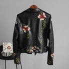 Damska Czarna Skórzana Kurtka - Z Haftem Kwiatowym