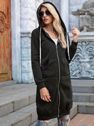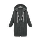 Damska Długa Bluza z Kapturem - Pełny Zamek Błyskawiczny i Luźny Fason