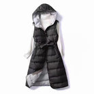Damska Długa Kamizelka - Pikowana z Kapturem i Paskiem