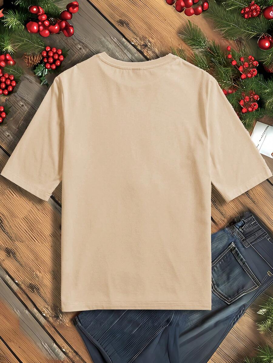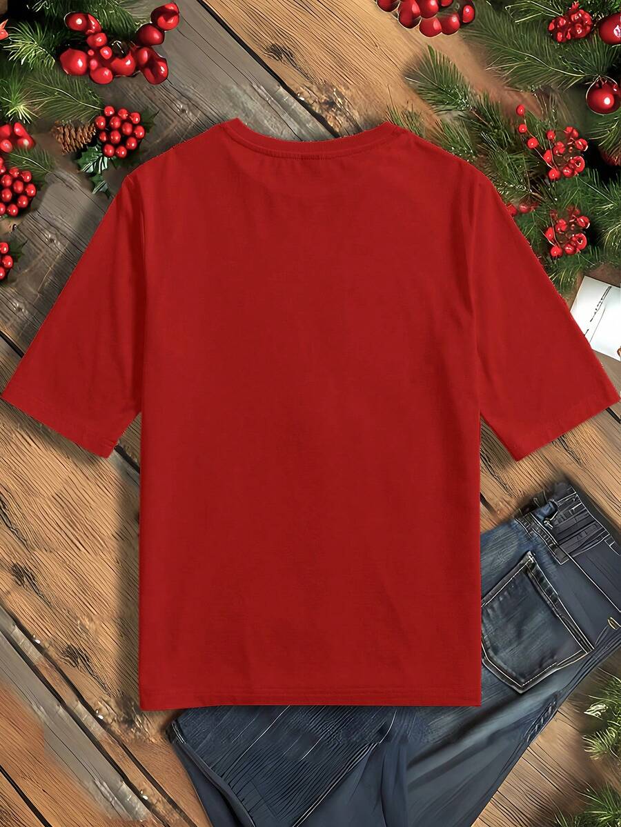 Ta świąteczna koszulka z krótkim rękawem jest dostępna w dwóch radosnych odcieniach: red i apricot. Jest oferowana w standardowym zakresie rozmiarów od S-XL. Prosimy o zapoznanie się z naszą szczegółową tabelą rozmiarów, aby znaleźć idealne, swobodne dopasowanie do Twojego świątecznego stylu.