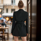 Damska Sukienka Blezer - Czarna Mini z Paskiem