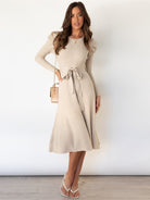 Damska Sukienka Swetrowa Dzianinowa - Midi z Paskiem i Długim Rękawem