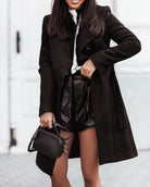 Damski Elegancki Płaszcz Jednorzędowy - Wiązany Pasek i Klapa Otwarta
