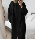 Damski Płaszcz Oversize Długi - Dwurzędowy i Otwarta Klapa