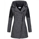 Damski Płaszcz - Z Kapturem i Asymetrycznym Zamkiem