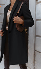 Damski Płaszcz Zimowy Długi - Pojedynczy Guzik i Klapa Otwarta