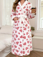 Damski Szlafrok Długi - Miękki z Paskiem i Wzorem w Serca
