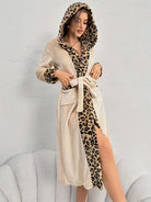 Damski Szlafrok - Miękki W Panterkę z Kapturem i Paskiem