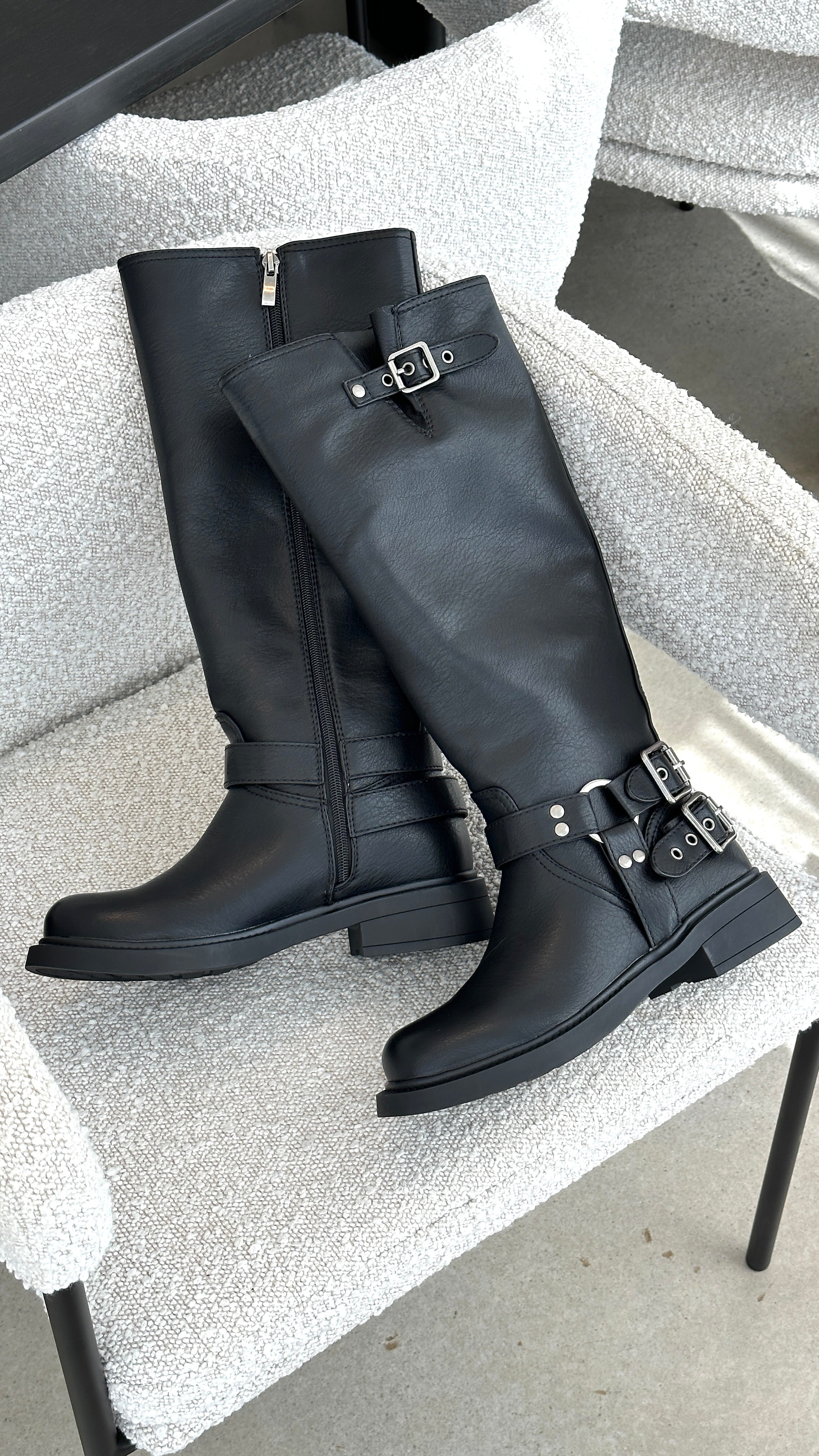 Damskie Czarne Kozaki do Kolan - Zamek Boczny i Klamry