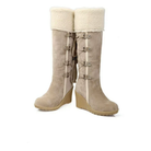 Damskie Kozaki do Kolan - Na Koturnie z Futerkową Ozdobą i Klamrami