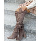 Damskie Kozaki za Kolano - Marszczone ze Spiczastym Noskiem