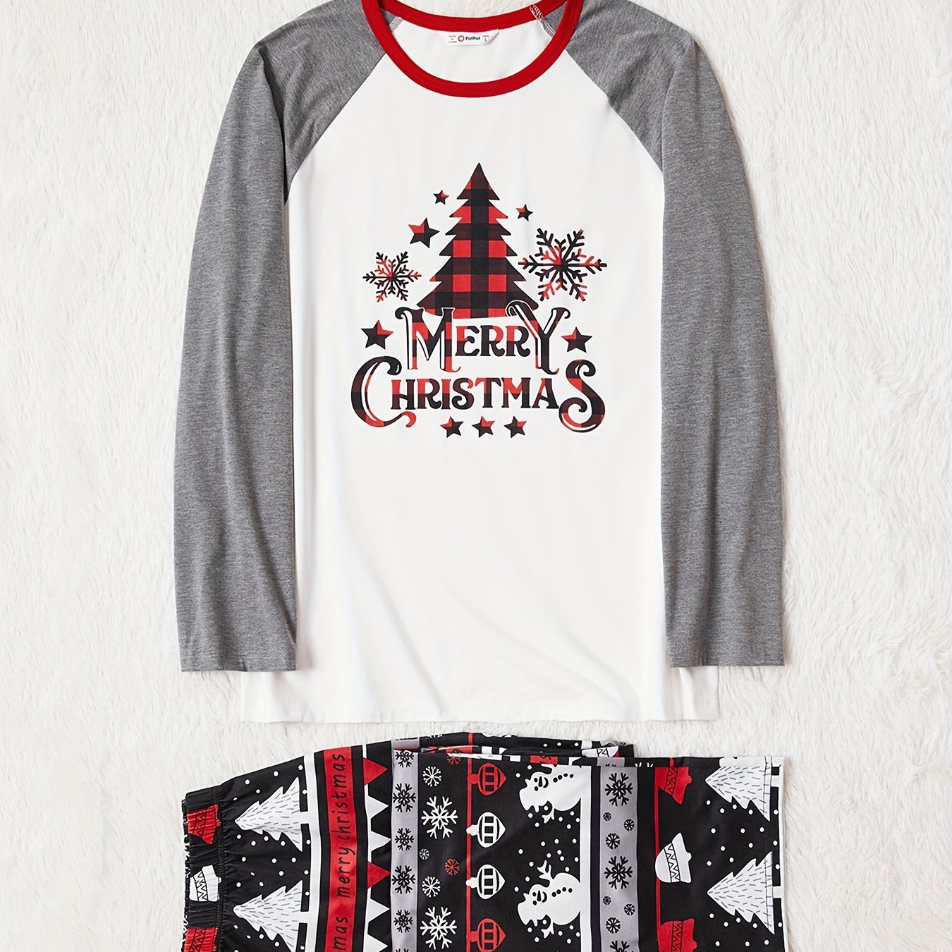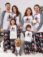 Unisex Komplet Piżam Rodzinnych Świąteczny Szary - Rękawy Raglan i Choinka